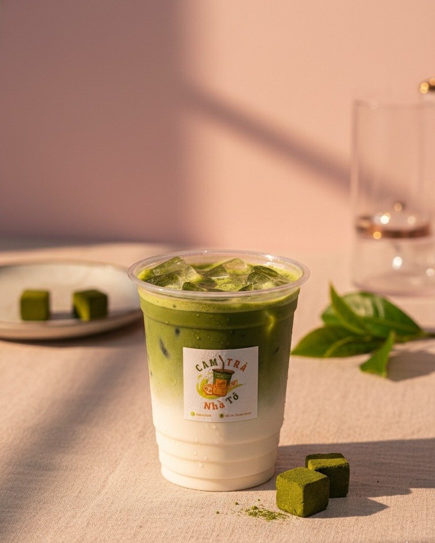 Matcha Latte Oatmilk của Cam Trà nhà tớ được pha từ bột matcha Nhật Bản nguyên chất, mang hương thơm tươi nhẹ và vị chát dịu đặc trưng. Khi kết hợp cùng sữa yến mạch không lactose, dòng sữa hạt lành tính và an toàn cho hệ tiêu hóa, ly matcha trở nên mượt mà, thanh nhẹ và dễ uống hơn bao giờ hết.